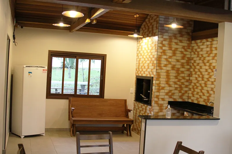 Com construção e decoração inspiradas na arquitetura alemã, a Casa do Bosque e Churrasqueira encanta logo no primeiro olhar — com seu visual delicado que remete a uma verdadeira casa de bonecas. Um espaço charmoso e acolhedor, ideal para eventos de até 50 pessoas, perfeito para quem busca um ambiente único e cheio de personalidade. É entrar e viver uma experiência encantadora no Clube Duque de Caxias.